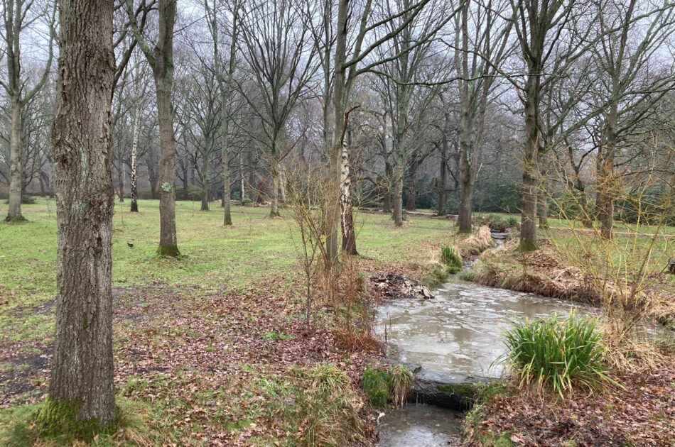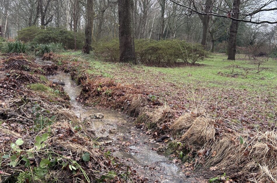 This stream in Isabella Plantation, Richmond Park, might look wild at first glance. Look closely, and you will be able to spot the careful work of ten volunteers (including me!).
